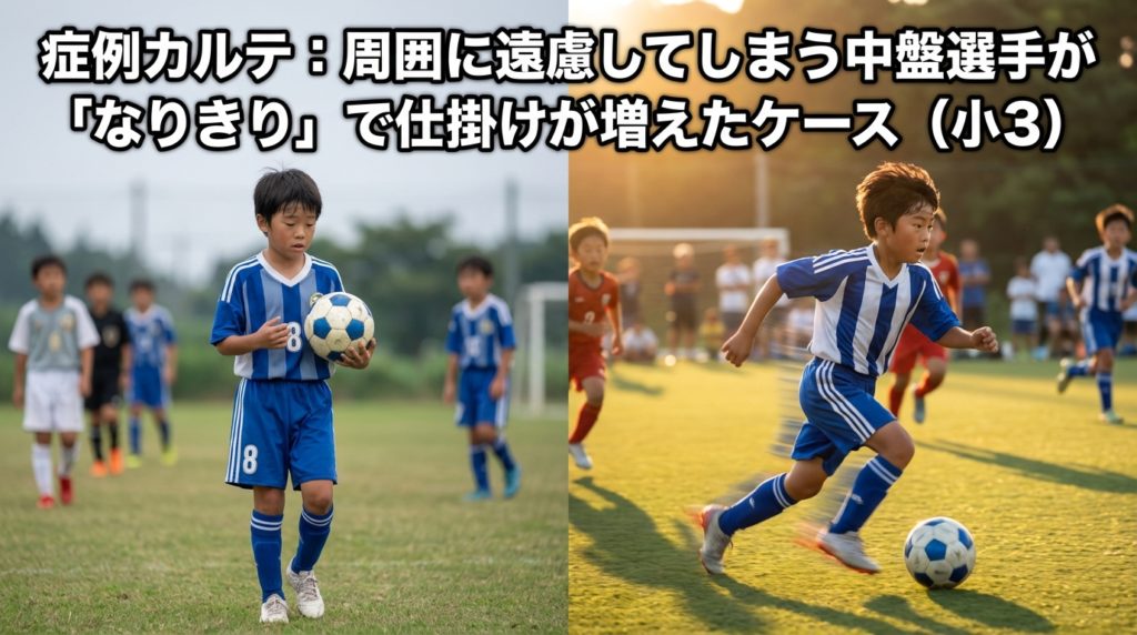 症例カルテ:周囲に遠慮してしまう中盤選手が「なりきり」で仕掛けが増えたケース(小3)