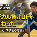 2025年12月7日 / 最終更新日時 : 2025年12月9日 ssyatabe0@gmail.com 実際の改善事例集 追い込んだ後、何をしていいかわからない守備とビルドアップの迷いをなくす 症例カルテ:博多レッスン4名分/守備・ビルドアップ・ドリブルの“奪えない・運べない”悩みをまとめて治した1日 1.基本情報 対象:小学生〜中学生・計4名(博多) ポジション:DF/MF(守備+ビルドアップ+ドリブル場面が […]
